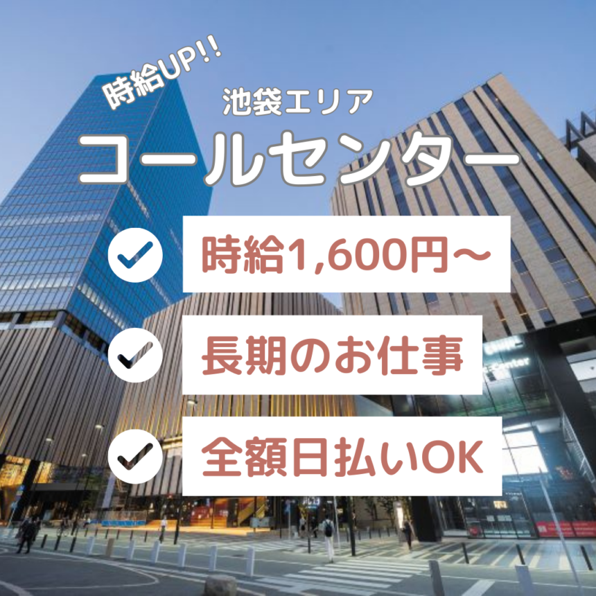 | アピールポイント | ・長期のお仕事 ・人気の池袋エリア ・未経験OK/ブランクOK ・服装自由 ・髪型(色)自由 ・ネイルOK ・選べる支払いサイクル(日/週/月) |