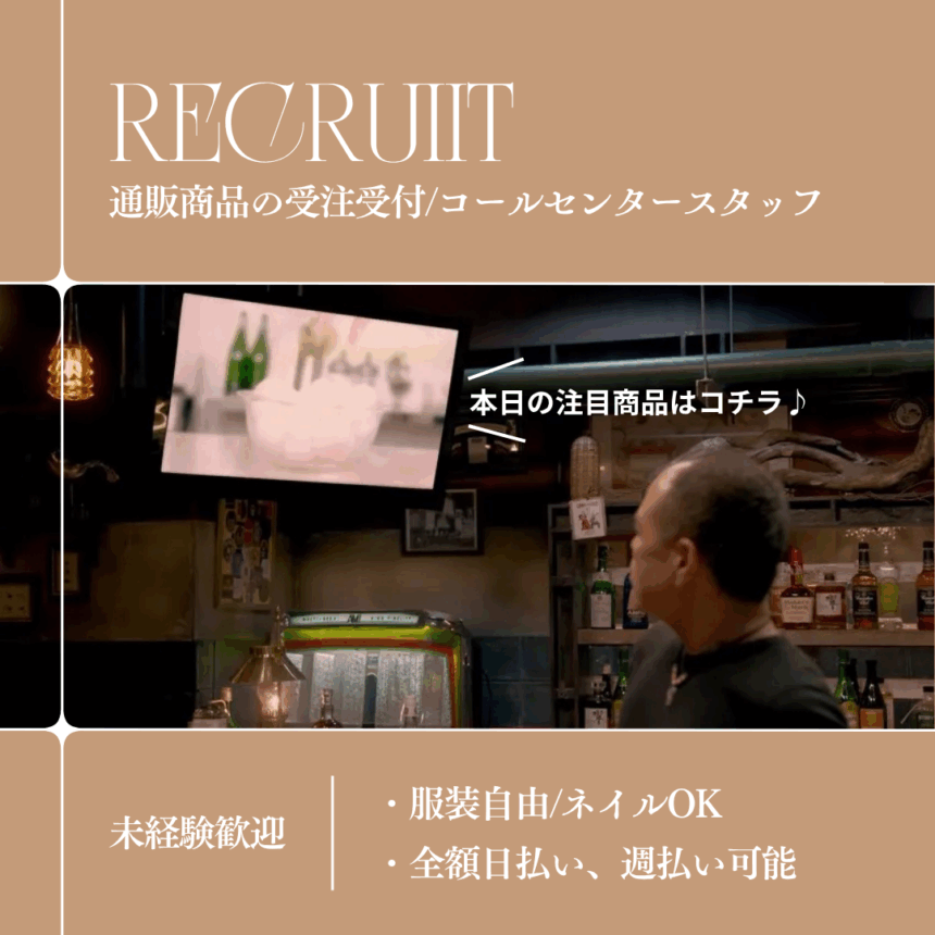 仕事内容 TVショッピングの注文受付(化粧品、健康食品)